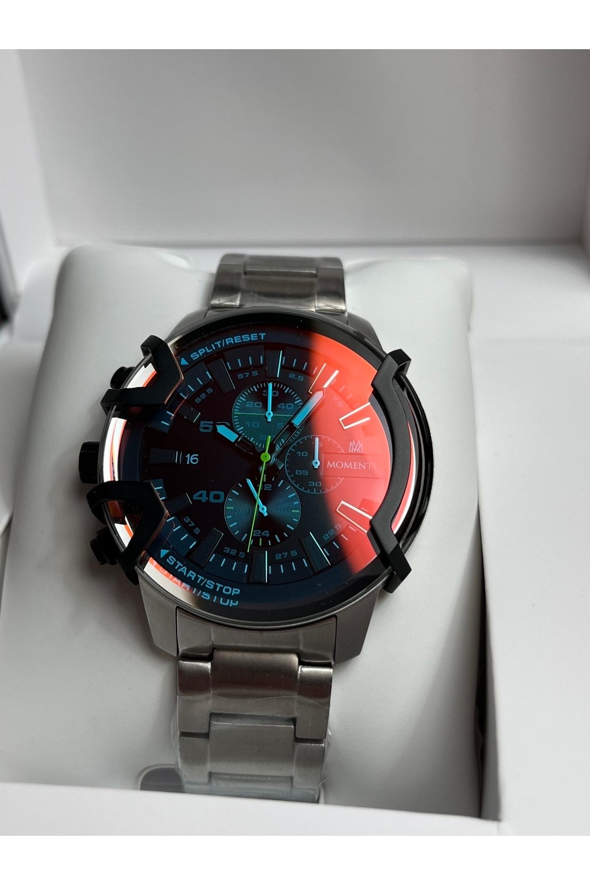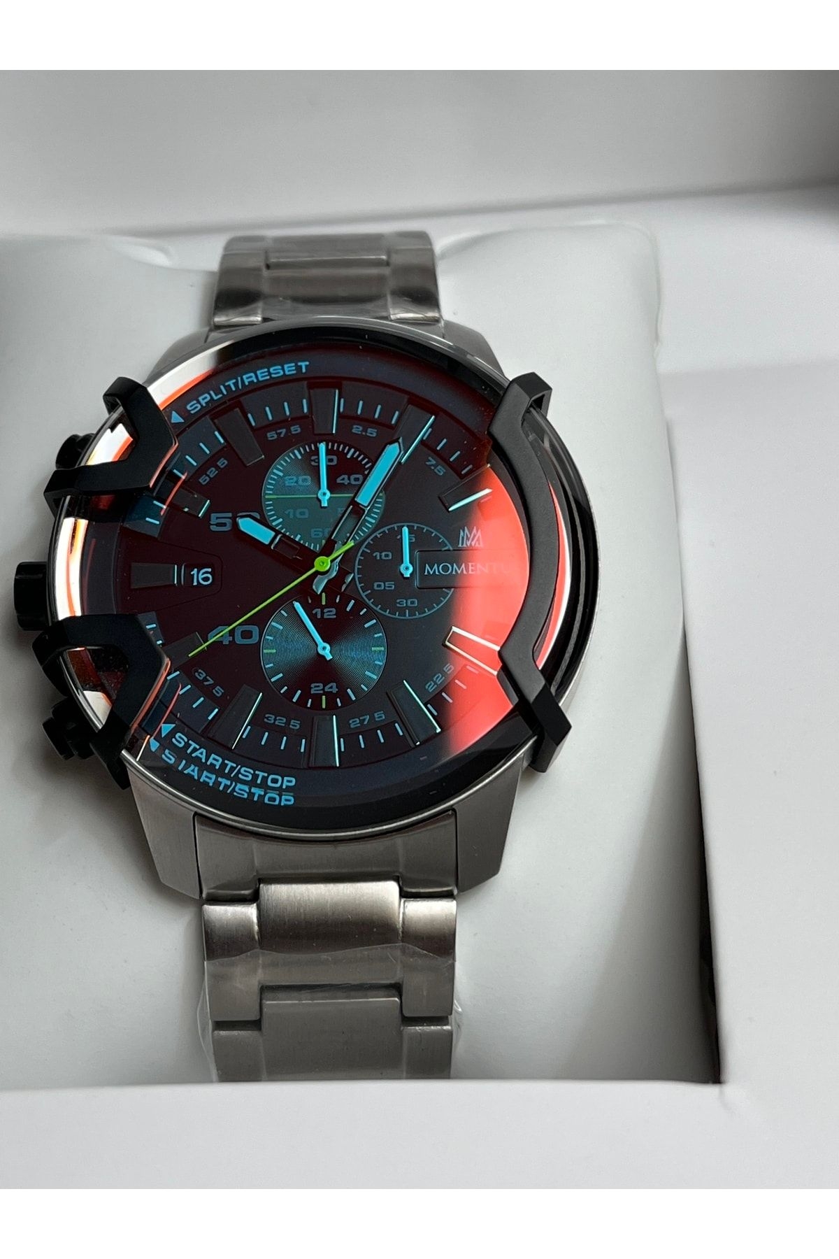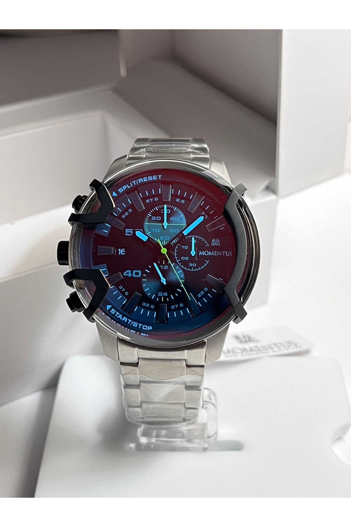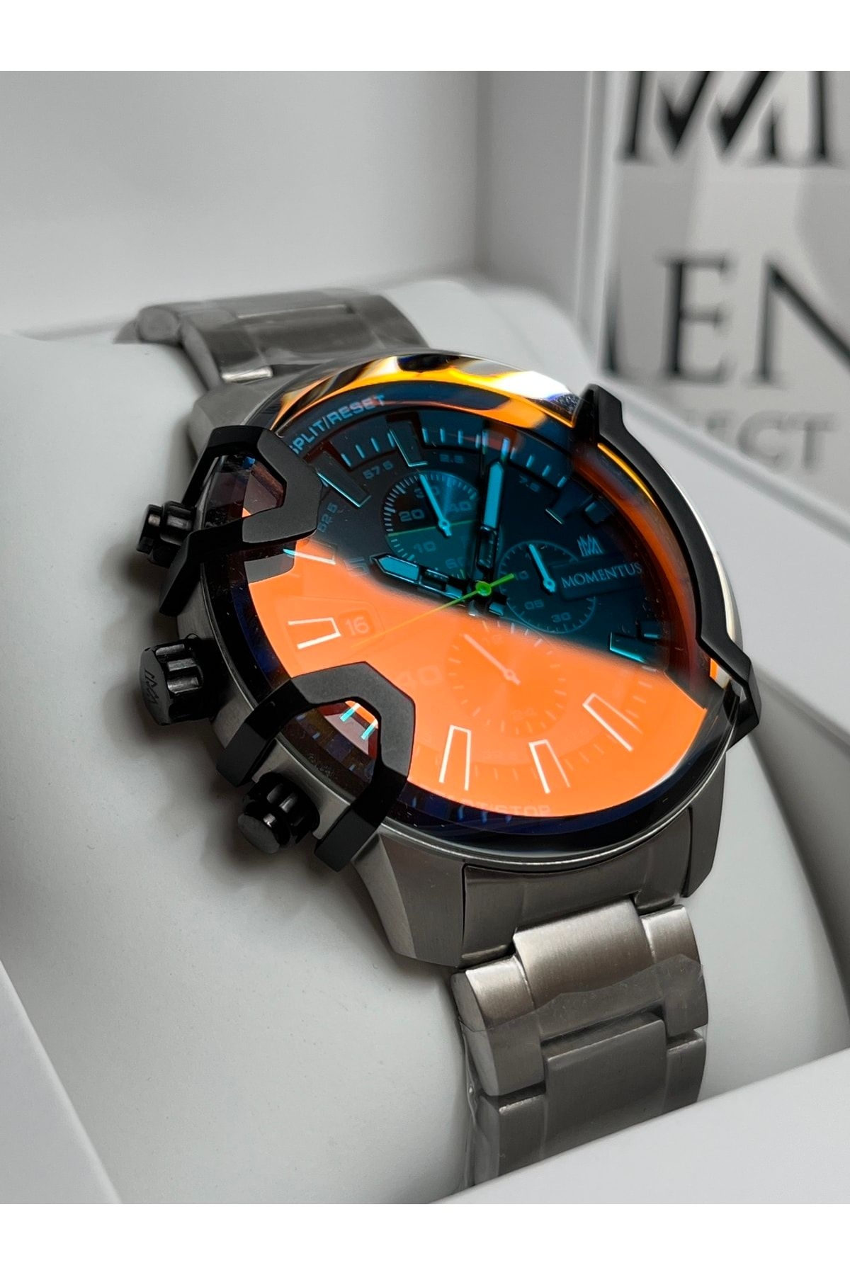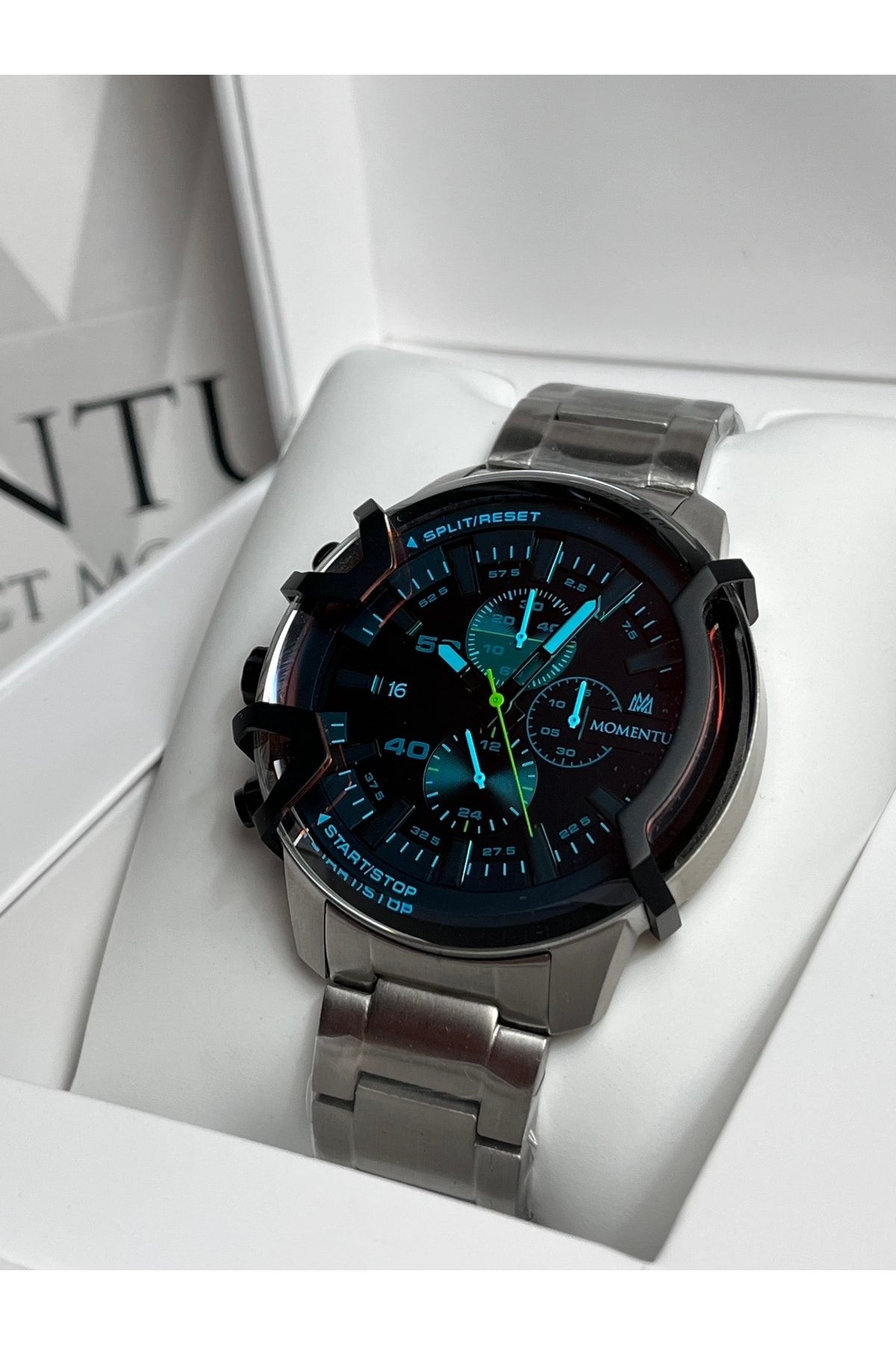 Marka:Momentus; Kasa materyali:Paslanmaz çelik ; Kasa çapı:48mm; Kordon materyali:Paslanmaz Çelik Bilezik;Kilit;Kilitli Klips ; Kordon Genişliği:24mm; Cam:Mineral ; Su geçirmezlik:10 ATM ; Mekanizma: Japan Seiko VD33 ;YTakvim:Var;Kronometre:Var Garanti:2 + 1 yıl ; Saatinizin belirtilen adımları takip ederek kaydını oluşturduğunuz da garanti süresi 3 yıla uzatılıyor. ; Siparişiniz kutusu,çantası ve garanti belgesi ile birlikte hassasiyetle hazırlanacaktır.; Öztürk Saat Güvencesi ile ;