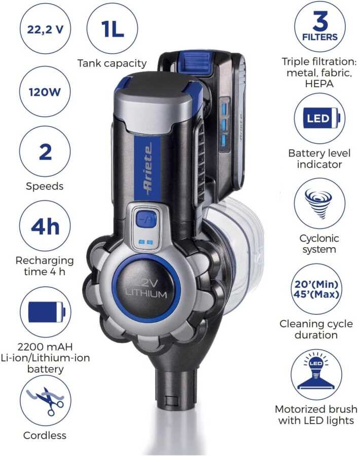 Ariete Dikey Şarjlı Süpürge, Mavi 2722/00