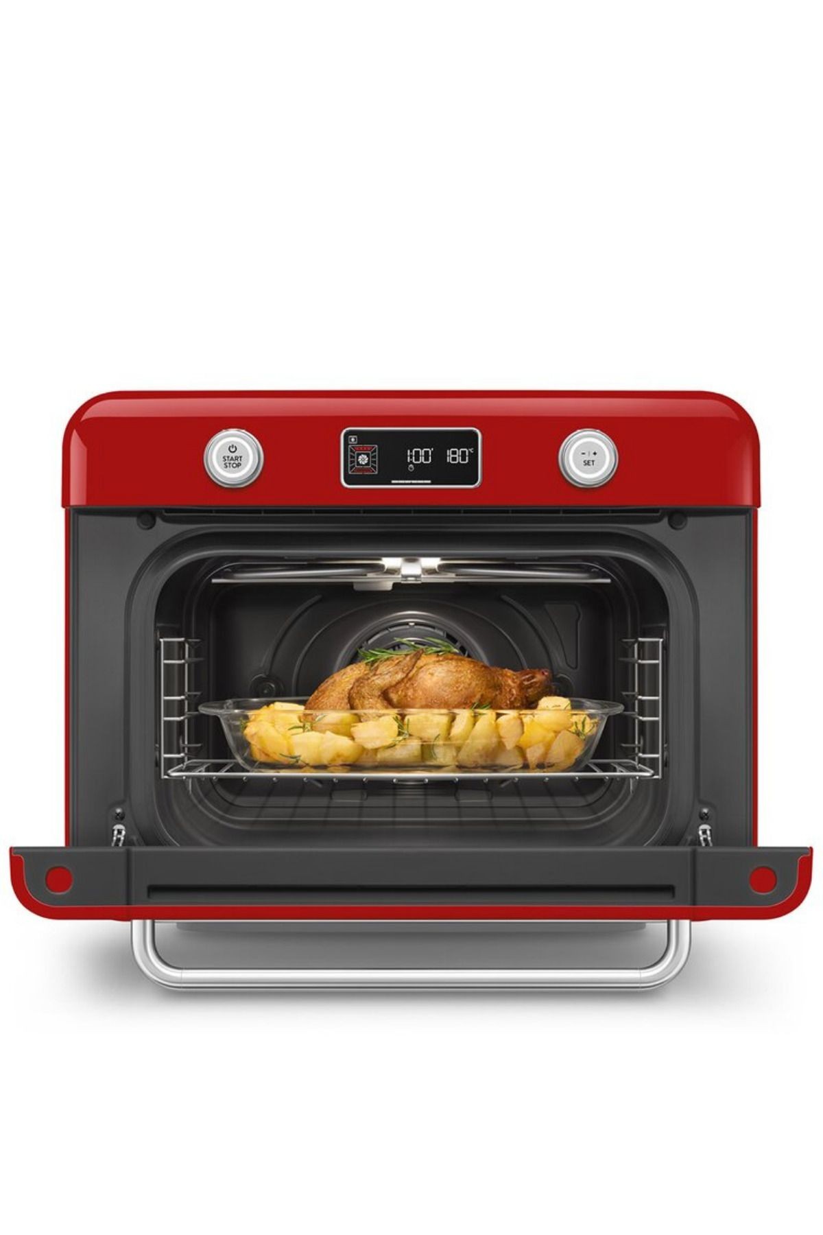 - Retro tasarımıyla dikkat çeken bu mini fırın, mutfaklarınıza nostaljik bir dokunuş katıyor.; - 20 ila 40 litre arasında değişen geniş hacmiyle çeşitli tariflerinizi kolayca pişirebilirsiniz.; - Çoklu fonksiyonları sayesinde farklı pişirme ihtiyaçlarınıza uyum sağlayarak pratik bir kullanım sunuyor.; - Resmi distribütör garantisi ile güvenli bir alışveriş deneyimi yaşamanızı garanti ediyoruz.; - 2 yıl süreyle geçerli olan resmi distribütör garantisi, uzun vadede de yanınızda olacak.; - Üç farklı pişirme fonksiyonu ile her türlü yemeğinizde mükemmel sonuçlar elde etmenize yardımcı olur.; - Buharlı pişirme özelliği sayesinde yiyecekleriniz daha sağlıklı ve lezzetli bir şekilde hazırlanabilir.; - Canlı kırmızı rengiyle mutfağınıza şık bir görünüm kazandırırken aynı zamanda sıcak bir atmosfer oluşturur.; - Web renk seçeneği olarak belirlenen kırmızı tonu, modern mutfak dekorasyonlarına kolayca uyum sağlar.